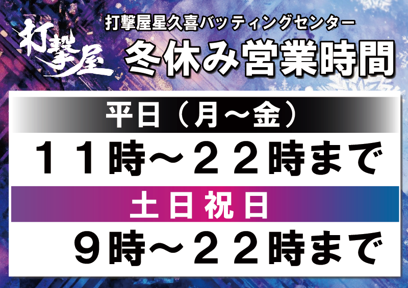 | 店舗名 | 打撃屋星久喜バッティングセンター |