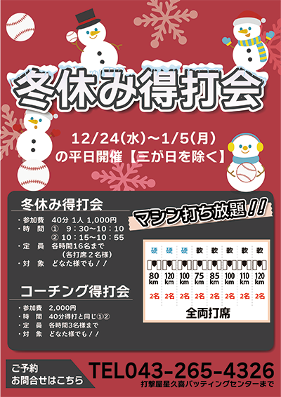 千葉市星久喜町にある硬式が打てる打撃屋星久喜バッティングセンター!年中無休!室内練習場完備